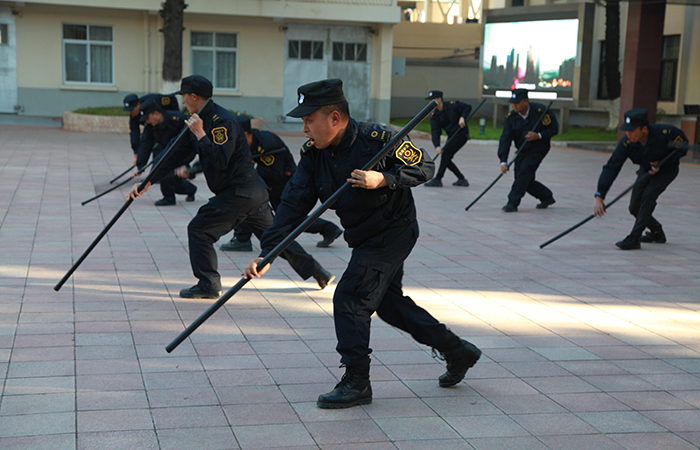 此次培訓(xùn)自1月10日開始,1月23日結(jié)束。隊(duì)列訓(xùn)練之后,護(hù)衛(wèi)隊(duì)們抖擻精神,展開劈棍、蓋棍、戳棍、挑棍、架棍、檔棍、格棍的應(yīng)急棍術(shù)訓(xùn)練,“挑棍腳步要上前,姿勢要放低”教練員認(rèn)真指導(dǎo)動作,護(hù)衛(wèi)隊(duì)員們聚精會神學(xué)習(xí),一次又一次反復(fù)練習(xí),直至動作達(dá)到標(biāo)準(zhǔn)要求。