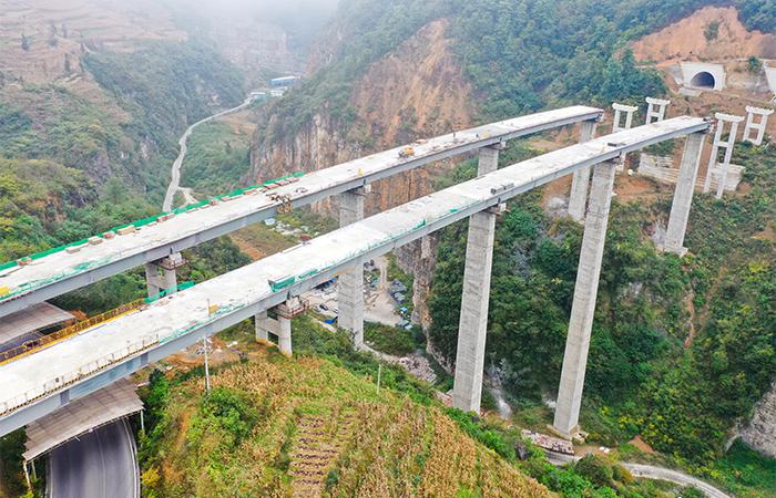 沖刺四季度丨元綠高速公路項目二分部曼延坡2號中橋現(xiàn)澆箱梁(雙幅)順利澆筑完成